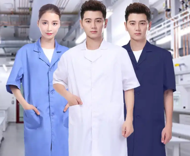 选长款大褂工作服,面料很关键,不同面料穿起来不一样,耐用度也差很多。